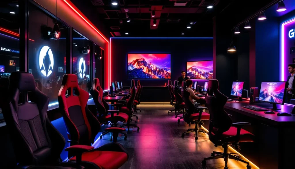 Visual design: RGB lighting, modern finishes, and clean cable management signal professionalism. Neon accents, LED strips, and branded signage create that “esports lounge” vibe. Avoid looking like a 2010s internet cafe (yellow walls, ancient posters). Modern doesn’t require overspending, strategic lighting and consistent color schemes work.